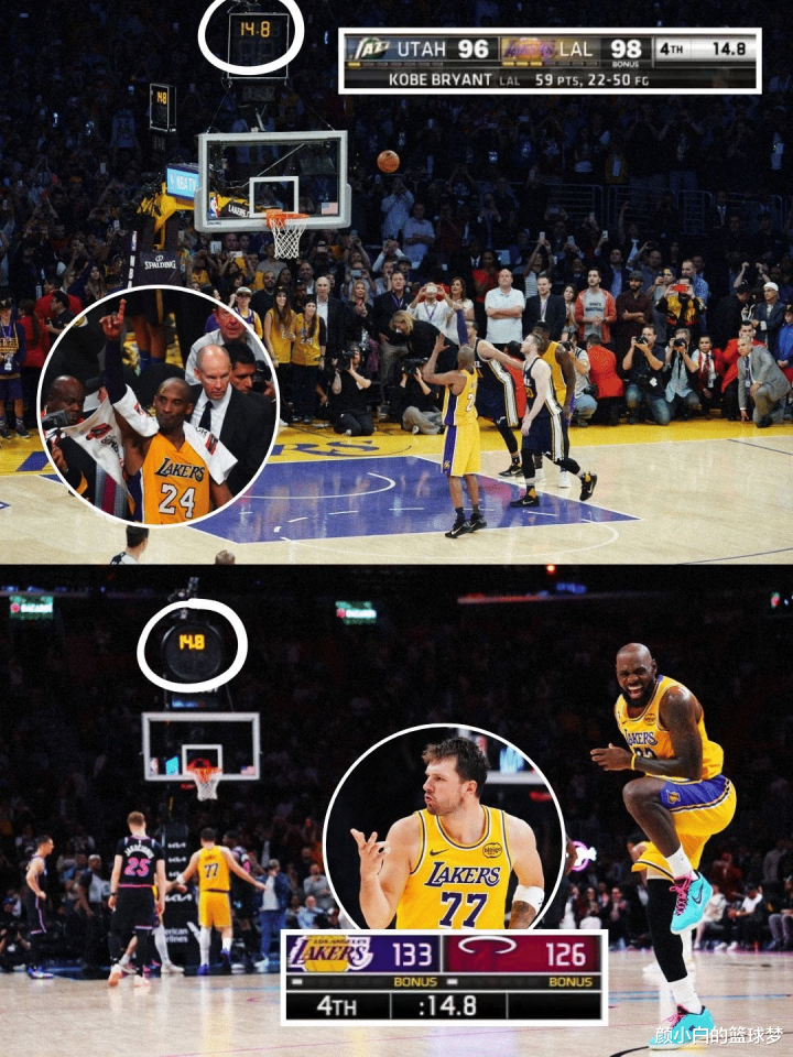 第三点:当年科比也是14.8秒拿到的第60分,东契奇也是在终场前14.8秒拿到第60分。