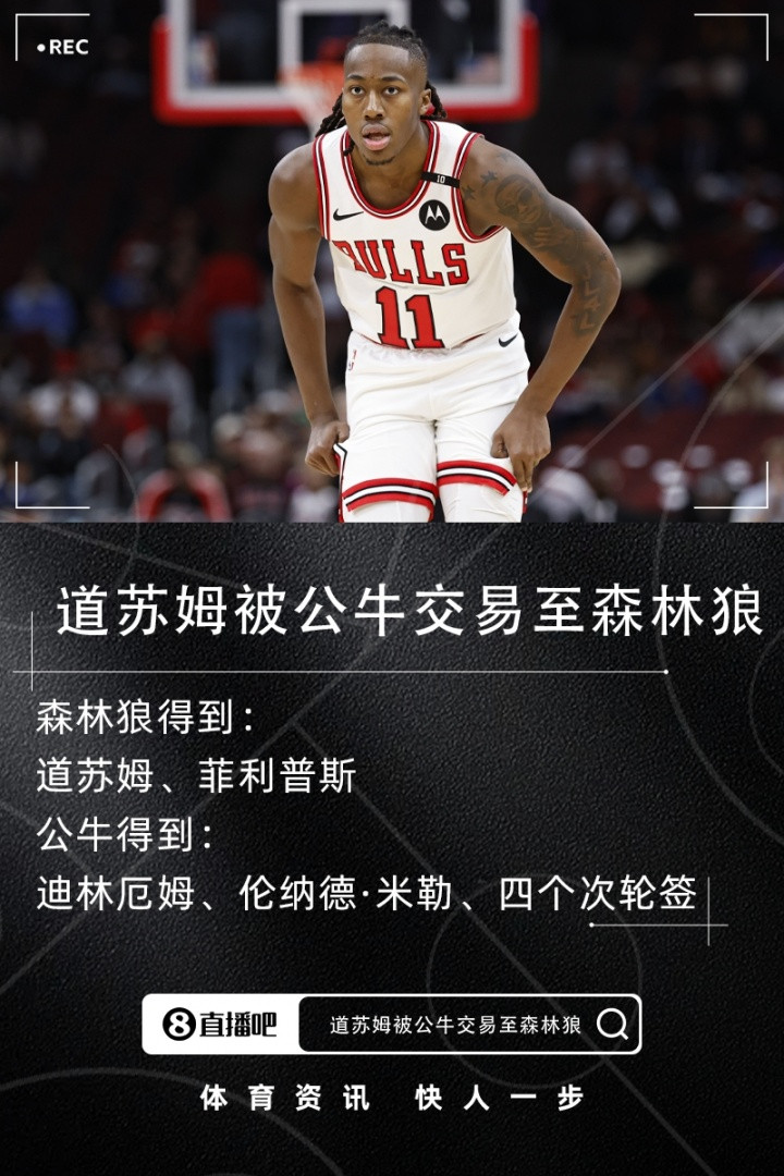 来了!公牛将道苏姆等送至森林狼换迪林厄姆+伦纳德·米勒+4次轮
