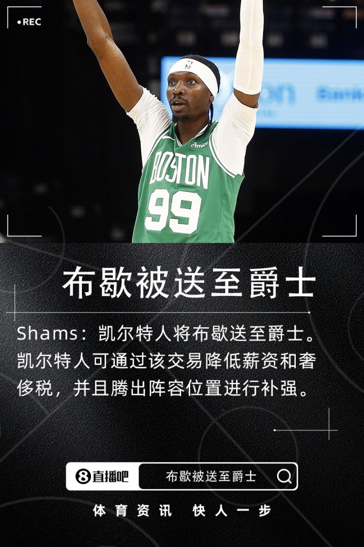 再省一笔钱!Shams:凯尔特人将布歇送至爵士换一个2027年次轮签