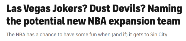 NBA大概率不会批准这个名字吧?毕竟近期体育博彩丑闻频发,可能性微乎其微……不过,我认为应该紧扣拉斯维加斯的城市特质,只是“赌徒”这个名字或许还能更优化。