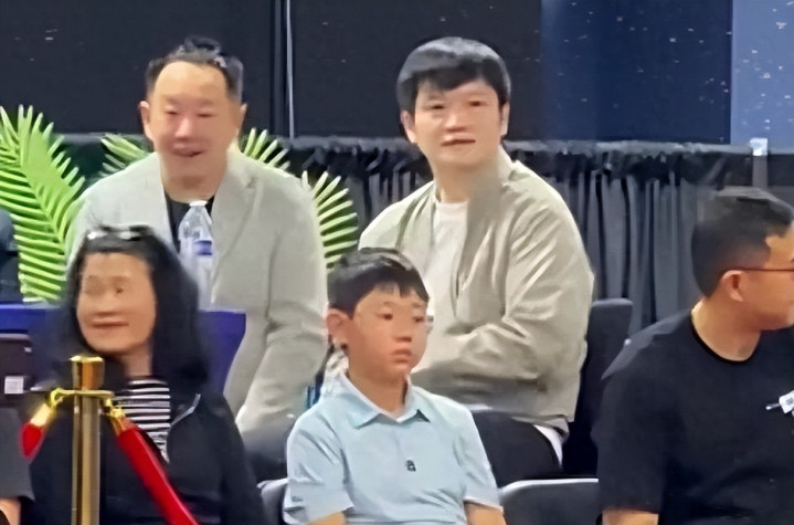 不同于以往身着战袍、手持球拍的赛场形象,樊振东身着休闲装,来到现场观赛。