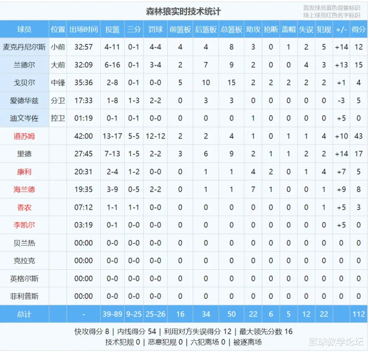 今天必须要称赞森林狼新援多森姆,此役他替补出战42分钟,投篮17中13,三分5中5,罚球12中12,爆砍43分4篮板2助攻1盖帽1失误,正负值+10。关键的第四节,多森姆7投5中独得15分,掘金全队单节16投3中。